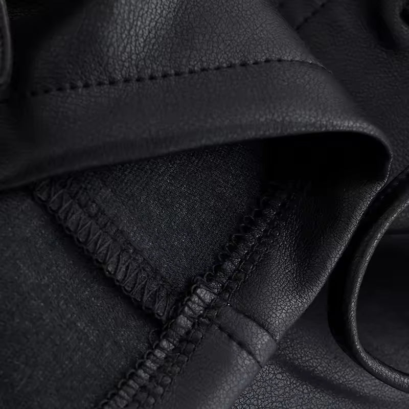 A Saia Ava Noir traz um visual urbano e sofisticado. Em couro sintético preto com acabamento levemente acetinado, possui cintura alta, modelagem justa e amarrações duplas em tiras nas laterais, além de bolso decorativo frontal. Perfeita para compor looks noturnos, streetwear refinado e produções fashionistas.
