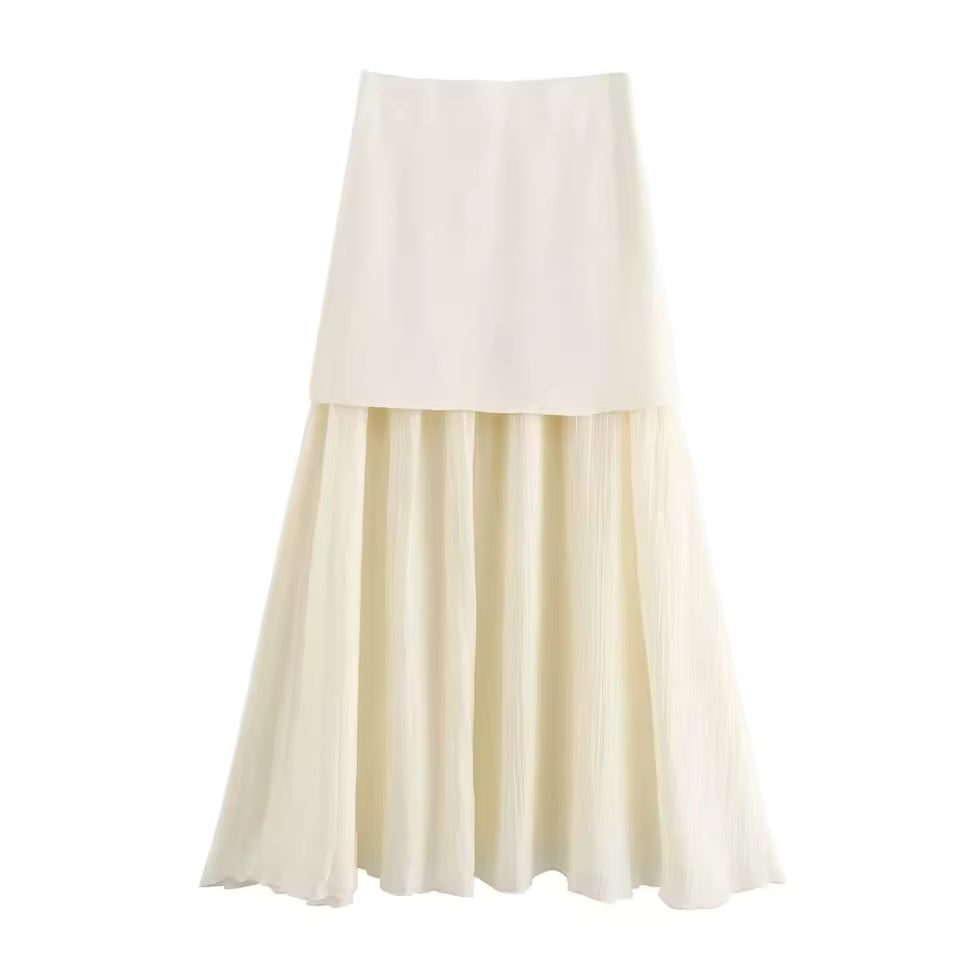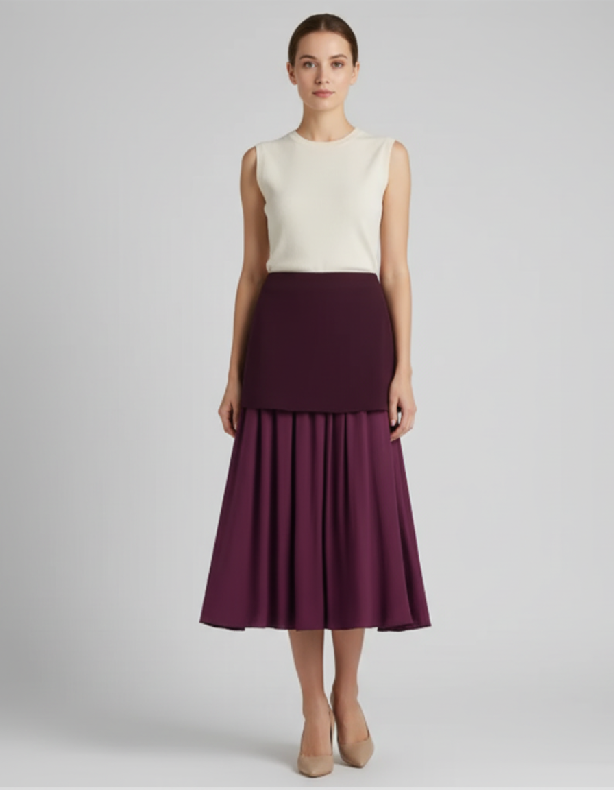 A Saia Monica traz um design clássico e sofisticado, perfeito para quem valoriza conforto e estilo em todas as estações. Com modelagem A-line e comprimento midi, a peça apresenta um delicado efeito plissado que adiciona fluidez e balanço a cada passo.