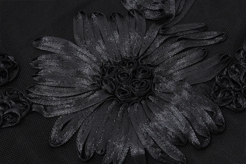 Aplicação de flores bordadas que elevam a sofisticação da peça